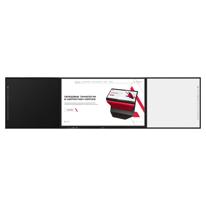 - он включает центральную сенсорную панель и две дополнительные доски - маркерные или меловые, размещенные по бокам;