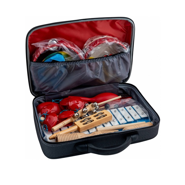 Универсальный комплект из 18 музыкальных инструментов, идеально подходящий для детского творчества, музыкальных занятий и групповых игр. Набор удобно размещён в компактном кейсе для хранения и переноски.