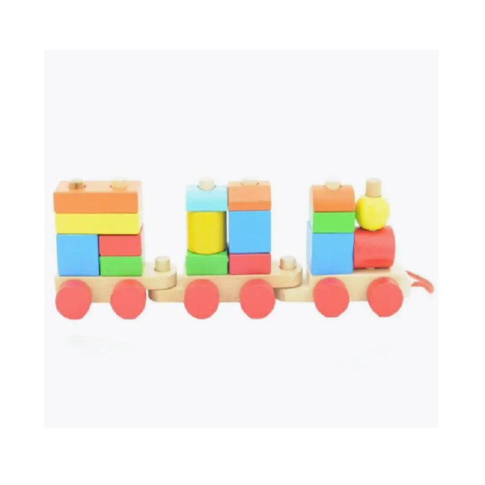 Яркий деревянный паровозик может надолго захватить внимание ребенка. Игрушка многофункциональная. Во-первых, это настоящий паровозик, который можно катать. Во-вторых, его можно разбирать и собирать, разъединяя и соединяя вагоны. В-третьих, поезд везет грузы, которые можно снимать. Грузы - это деревянные фигурки с отверстиями, которые надеваются на штырьки, закрепленные на вагонах (получаются небольшие пирамидки). В некоторых деталях два отверстия, т.е. одеть их нужно сразу на 2 штырька, а это уже достаточно сложная задача для маленьких пальчиков. Кроме того, ребенку сначала нужно будет проанализировать, какие детали для какого вагона подходят. Ведь детали с двумя отверстиями не подходят для вагончика с тремя штырьками. Так что паровозик не так прост, как может показаться с первого взгляда. Если взять шнурок, то детали можно использовать, как большие деревянные бусинки. В ходе игры можно познакомить ребенка с основными цветами. Научить сортировать фигуры по форме и цвету. Игра с небольшими деревянными фигурками благотворно влияет на развитие мелкой моторики ребенка.