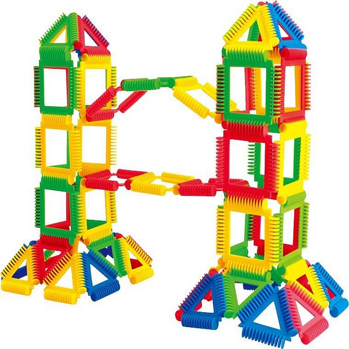 Детали этого конструктора позволят по-новому взглянуть на привычные объекты! Треугольные и квадратные элементы наборы имеют необычные рифленые края – в виде кругов. За счёт такой оригинальной поверхности детали удаётся скреплять друг с другом и создавать любые плоские или трёхмерные фигуры! Рифленый край – безопасный и приятный на ощупь, позволяет работать с сенсорным восприятием ребёнка. Ну и, конечно, не обойдется без богатого воображения и логического мышления! Интересный конструктор не оставит равнодушным ни одного малыша!