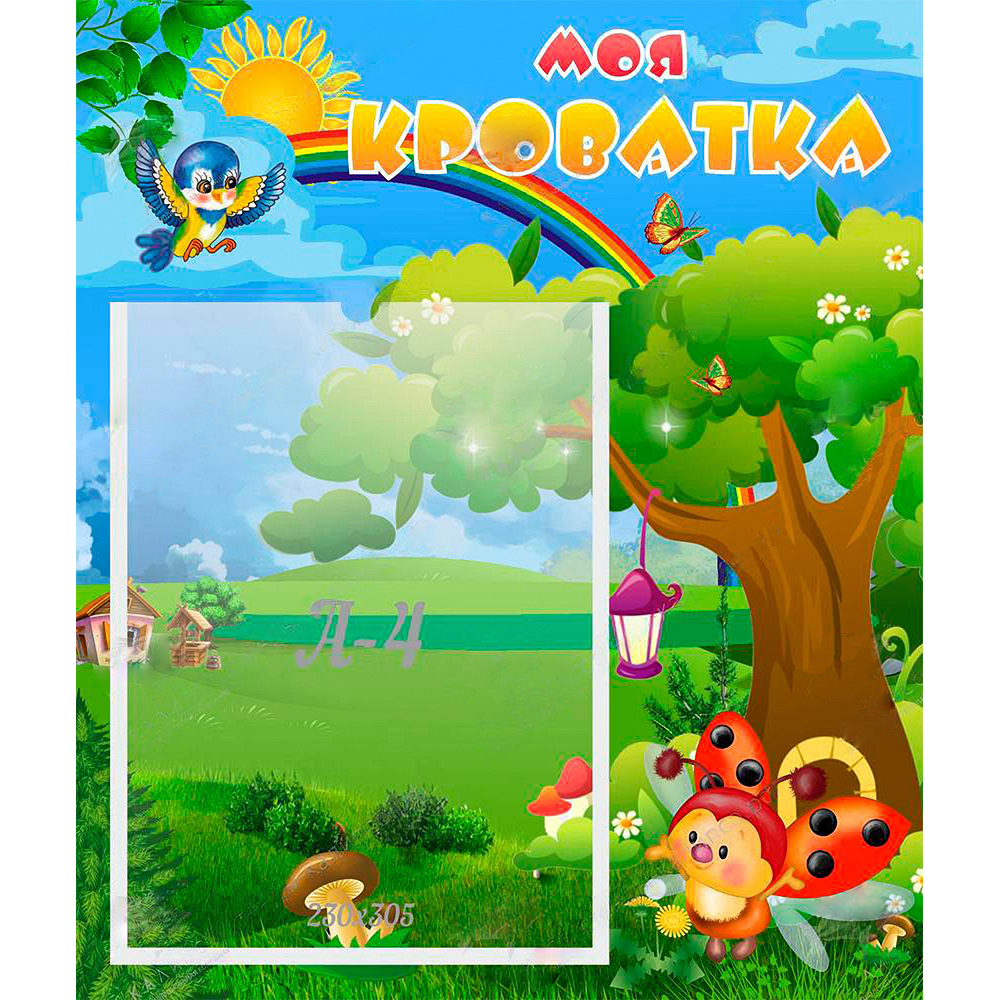 Божья коровка под раскидистым деревом готовится к дневному сну. С помощью списка, размещенного в удобном кармане формата А4, ребята без труда найдут свою кровать. Данный стенд поможет малышам избежать путаницы во время подготовки ко сну.
