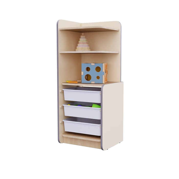 Угловой шкаф с тремя ящиками сконструирован для оформления углового пространства игровых комнат в детских учреждениях. Подходит для оснащения детских садов, организаций дополнительного детского образования, игровых комнат в ресторанах, торговых центрах и детских лагерях. С угловым шкафом можно легко создать систематизированное хранение и атмосферу порядка в ДОУ.